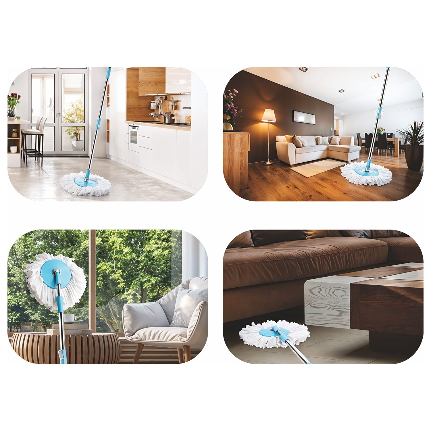 360° Rotating Mop Head: Compatible with most spin mop buckets for deep and flexible cleaning.