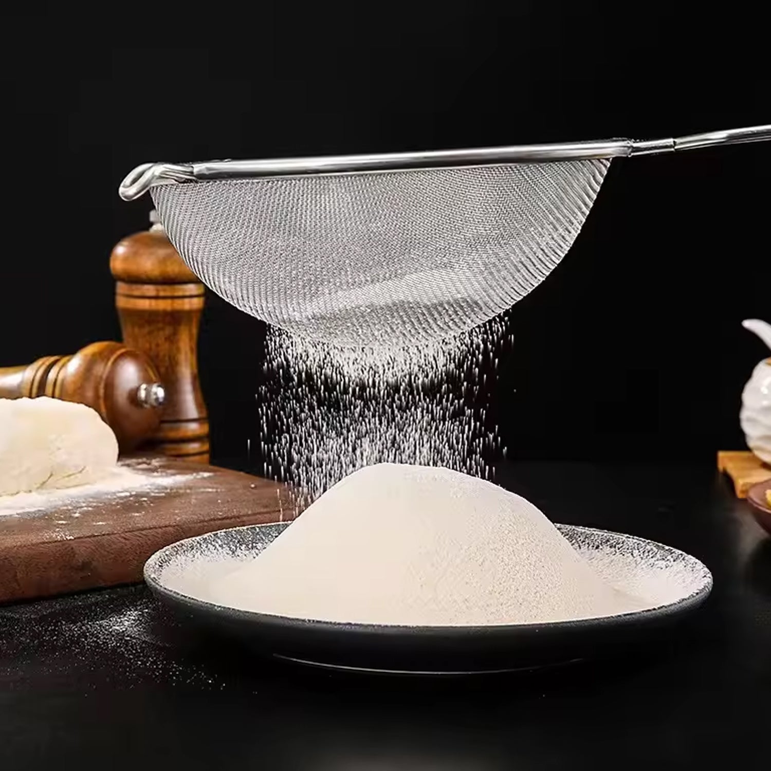 - Stainless Steel Premium Mesh Strainers Made of stainless steel, rust resistant and lightweight, but stronger than aluminum or and is long-lasting. Fine sieve strainer.