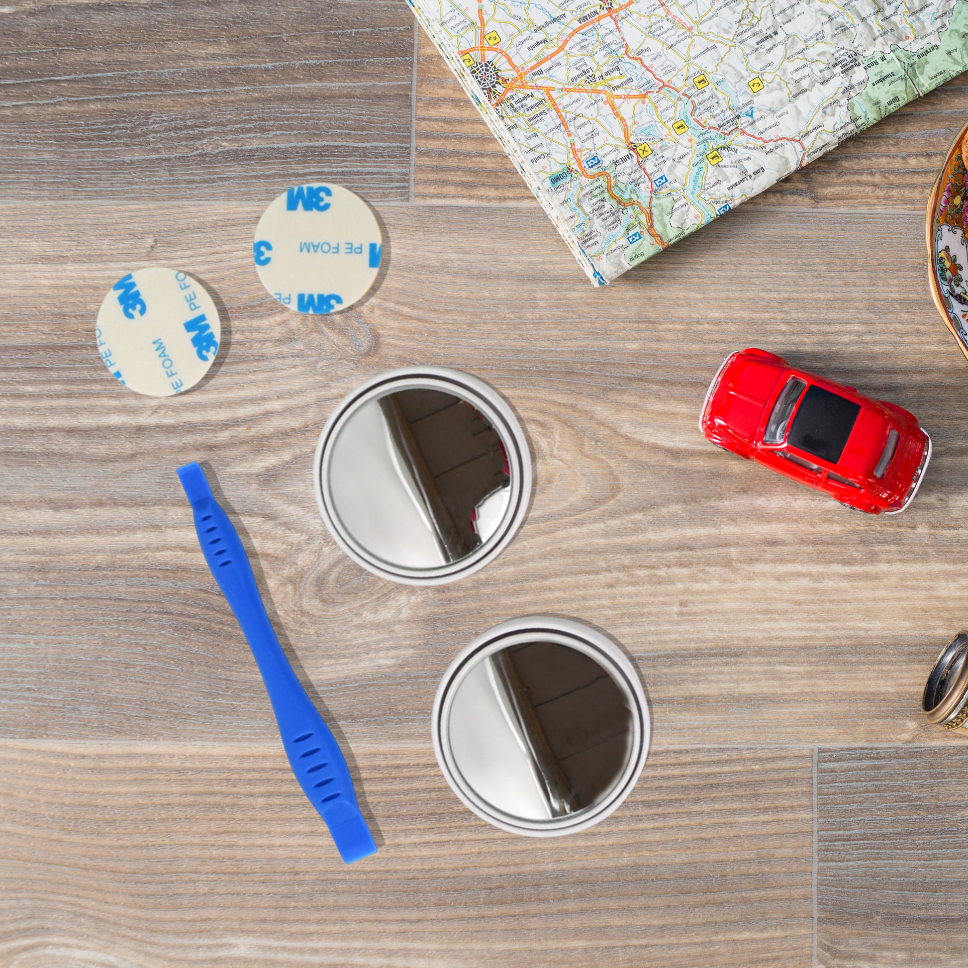 Car Blind Spot Side Mirror Round With Heavy Duty Plastic Spudger Pry Tool (2 Pcs Set)